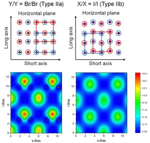 <Abstract:> Halogen substitution of N-salicylideneaniline (SA) molecules enables the modulation of intermolecular interaction modes, thereby allowing control over the structure of polytypic crystals with different stacking sequences. In crystals of halogen-substituted SA containing I or Br, type-II halogen bonding was observed in both I/I and Br/Br interlayer interfaces, while the symmetry of atomic arrangements at the stacking interfaces differed. Accordingly, we defined the Br/Br interlayer structure with C2 axis as type-IIa, and the I/I interlayer structure with 21 screw axis as type-IIb. In this study, we examined the relationship between halogen species and the stability of stacking interface structures for a polytype library of dihalogen-substituted SA using DFT calculations.