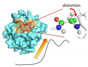<Abstract:> The enzymatic reaction mechanism of the serine protease neuropsin (KLK8) was investigated using QM/MM calculations combined with MD simulations. The out-of-plane distortion of the scissile amide bond in the substrate-binding complex contributed to a reduction in the activation barrier. Nucleophilic attack by Ser195 Oγ initiated proton transfer among the catalytic triad and the formation of a tetrahedral intermediate. Free energy analysis indicated that this intermediate formation is the rate-determining step, emphasizing the importance of amide bond distortion and oxyanion hole stabilization for catalysis.
